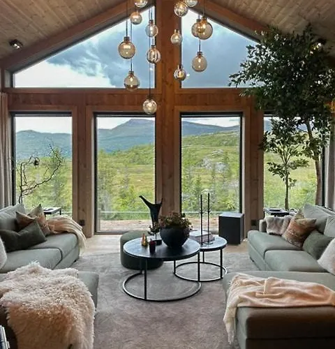 Modern cabin at Høgevarde panoramic view, fireplace&EV station