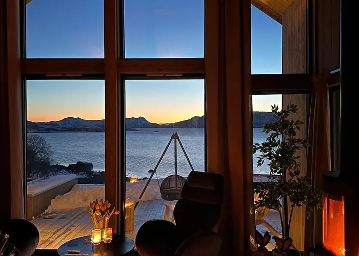 Cabin With Sea View tilbyr et svømmebaseng, en 10-minutters kjøretur fra Eidsfjorden. Denne villaen har en terasse